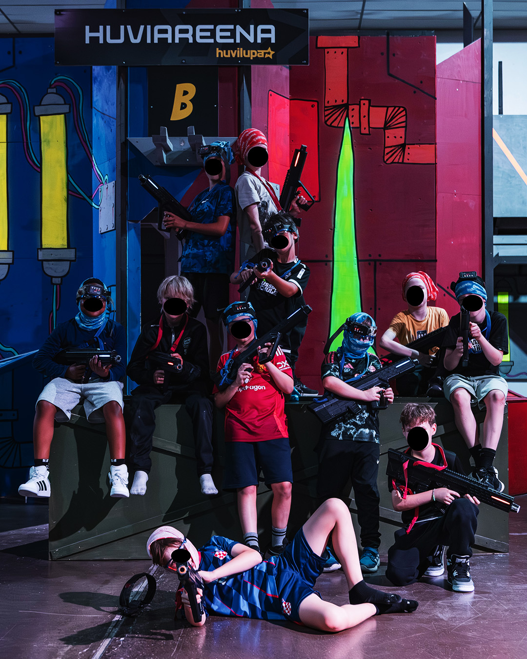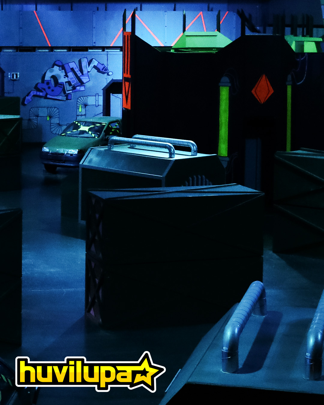 Laser games at Huvilupa are available for private events in two different indoor arenas. Huviareena Laser Valkyrie features the lightweight, durable Valkyrie equipment, while Huvicity Laser Barracuda continues to operate with our retired but reliable Barracuda tagger. Both arenas are approximately 1,500 square meters in size and are designed to feel like real urban environments, complete with vehicles, obstacles, and two-story buildings. Each arena supports up to 24 players at a time, making them ideal for private groups, parties, and competitive sessions