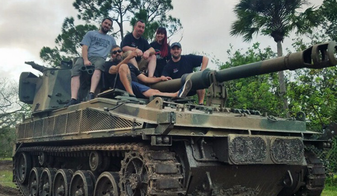 Our iCOMBAT team was in Florida last month for the IAAPA conference and got the opportunity to not only see the facility but drive a tank as well! Stephanie our Senior Graphic Designer recalled it as being, a really unique experience that allowed her to realize what her brother felt like because he was a Tank Commander in the Marines. Pictured is the tank that she and the team got to drive through the combat terrain and over an actual car. There are two different levers used to drive the tank and turn it left or right. She said she picked it up really fast and that her only regret was being too gentle. Below are some pictures of their adventure at Tank America. If you are ever near Melbourne, FL check this place out!